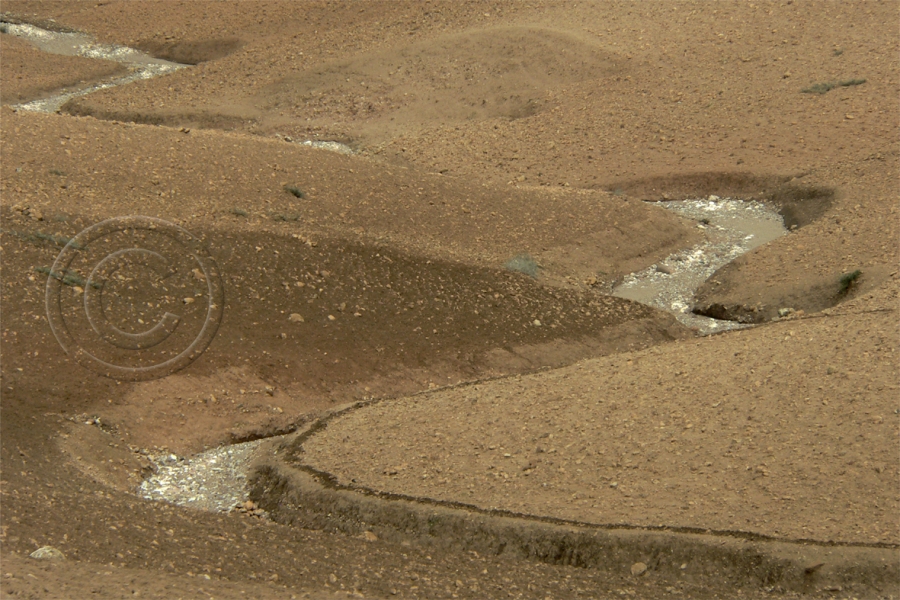 Bared landscape, not covered by vegetation, shows the truth of itself. It is determined by light, shape and colour. The constant change of light affects the form and colour substantially and creates a feeling of uncertainty in the passing time. The release of a shutter records the truth that never is.